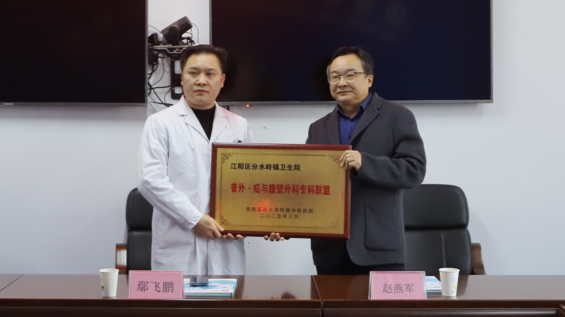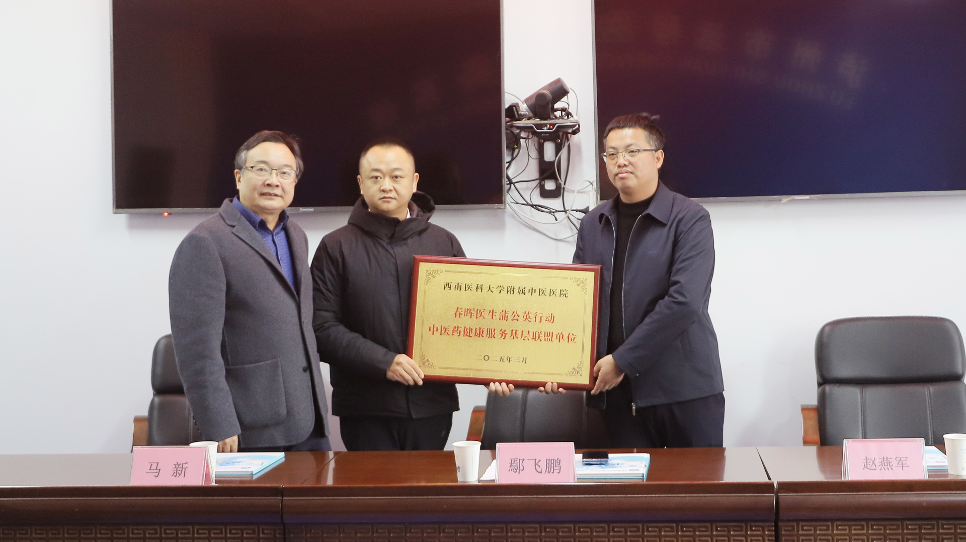 3月29日,我院普外·疝与腹壁外科党支部与江阳区分水岭镇卫生院举行了春晖医生蒲公英行动·中医药健康服务基层联盟单位授牌仪式。我院党委副书记·纪委书记鄢飞鹏、普外·疝与腹壁外科党支部成员、分水岭镇卫生院院长赵燕军参加了仪式。