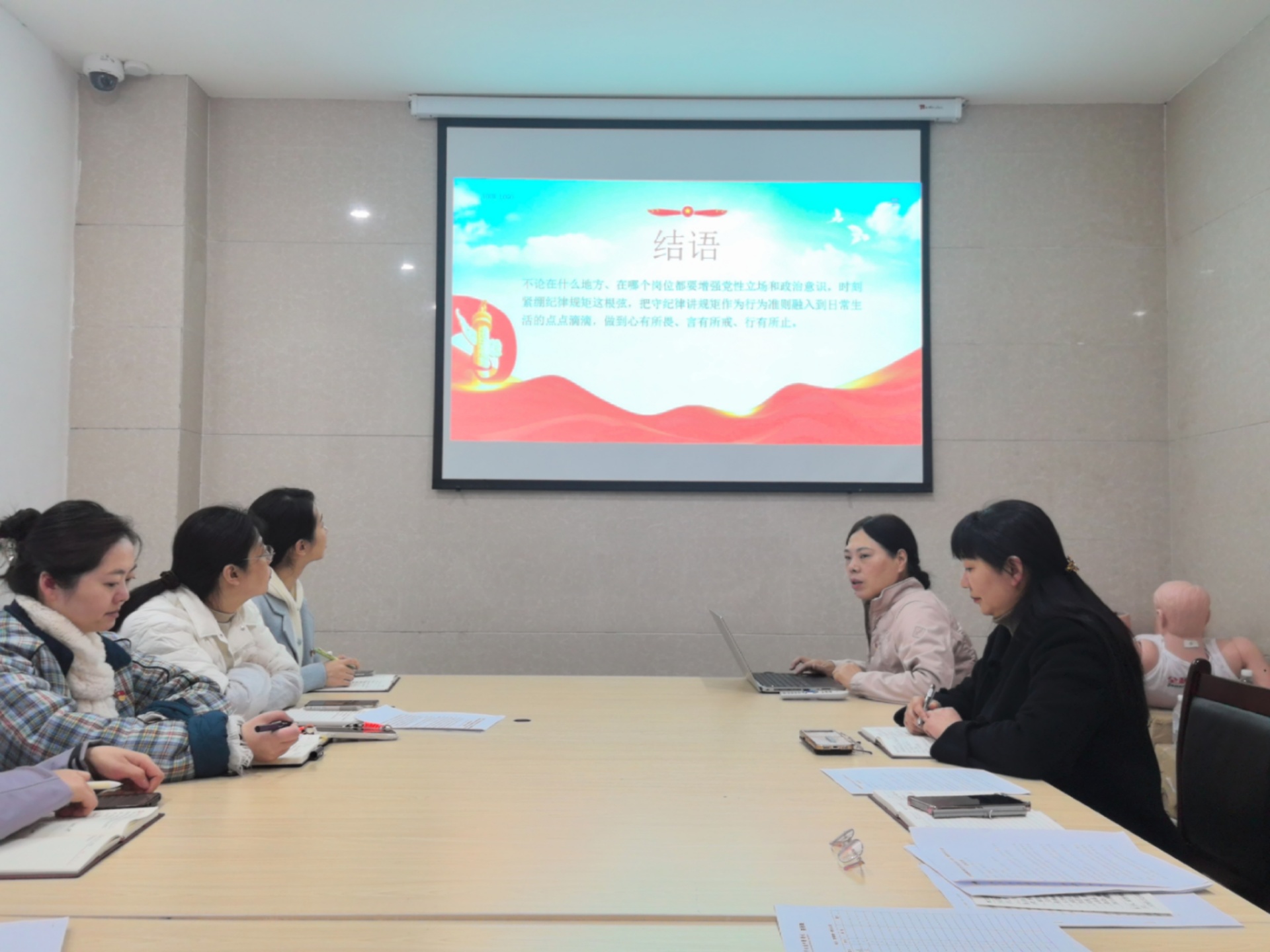 会上,李素莲同志分享了《以案说纪——违反“六大纪律”典型案例》,传达了医院全面从严治党工作会暨深入贯彻中央八项规定精神学习教育工作部署会会议精神,领学了《西南医科大学附属中医医院党支部参与科室重大问题决策制度(试行)》;邓淑霞同志领学了习近平在二十届中央纪委四次全会上的重要讲话;吴清梦同志领学了李希在二十届中央纪委四次全会上的工作报告;赵俊同志领学了习近平重要文章《健全全面从严治党体系》。