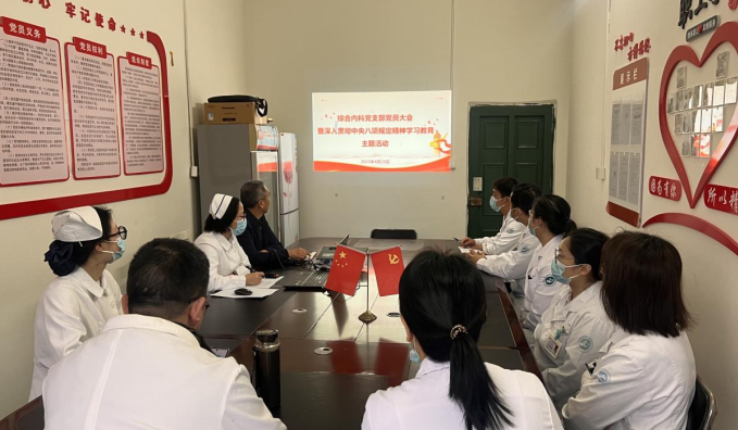 4月24日,综合内科党支部召开党员大会暨“深入贯彻中央八项规定精神学习教育”主题党日活动,支部全体党员、积极分子参会。会议由党支部书记代志敏同志主持。