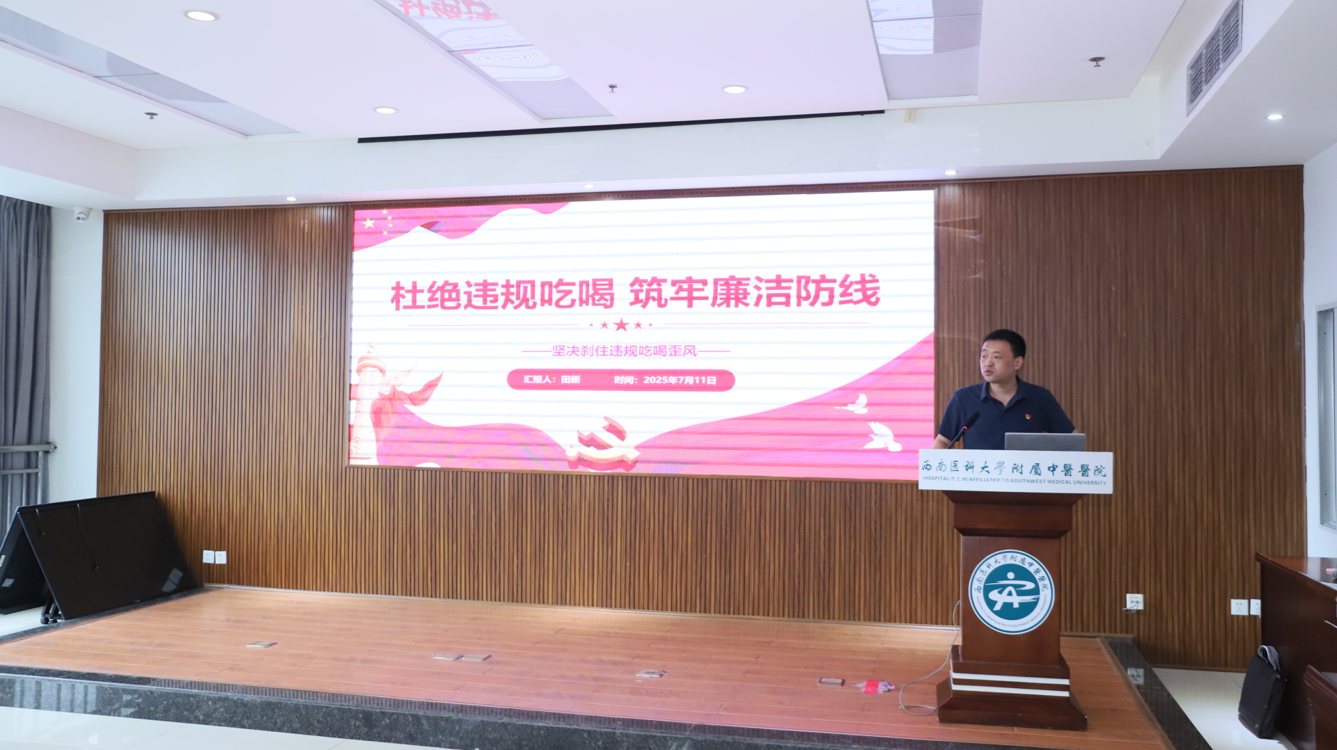 活动中,纪监审党支部书记田新同志以《杜绝违规吃喝 筑牢廉洁底线》为题讲了党课;党办党支部书记汪建英同志领学了新华社文章《中央层面深入贯彻中央八项规定精神学习教育工作专班、中央纪委办公厅公开通报魏栓师等人违规吃喝严重违反中央八项规定精神问题》;宣传统战党支部书记马艳萍同志通报了医院新媒体平台管理等相关工作要求;门诊党支部两名党员同志展示了中医养生功法八段锦。