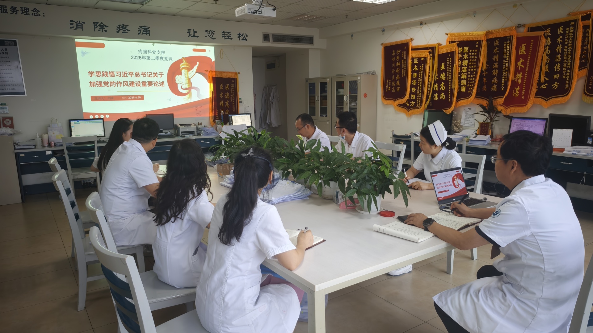 6月30日,疼痛科党支部召开第二季度党员大会,全体党员参加了会议。会上,党支部书记刘庆同志领学了《学思践悟习近平总书记关于加强党的作风建设重要论述》,他主要从理论内涵和作风建设的重要意义、实践路径、现实案例、未来展望五个方面进行了讲解。