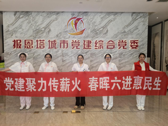 7月4日,综合内科党支部、水井沟门诊党支部、科研党支部、肿瘤·血液病科(忠山)党支部在龙马潭区特兴街道街村社区开展了“党建聚力传薪火,春晖六进惠民生”健康教育讲座和健康咨询活动。