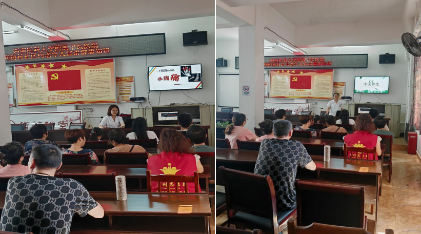 活动现场,医护人员艾娜、刘卓梅、刘艳先后为居民作了《一个吃货的告白:痛痛痛》《中医养生》《糖尿病患者夏季健康管理指南》健康知识讲座,并为居民提供相关健康咨询。