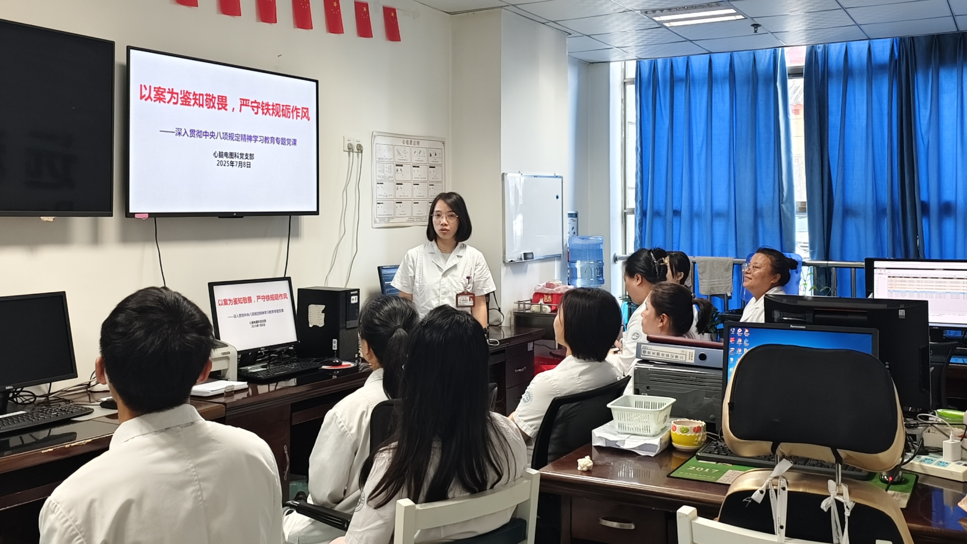 7月8日,心脑电图科党支部开展了“以案为鉴知敬畏 严守铁规砺作风”主题党日活动,支部全体党员及部分医务人员参加了活动。