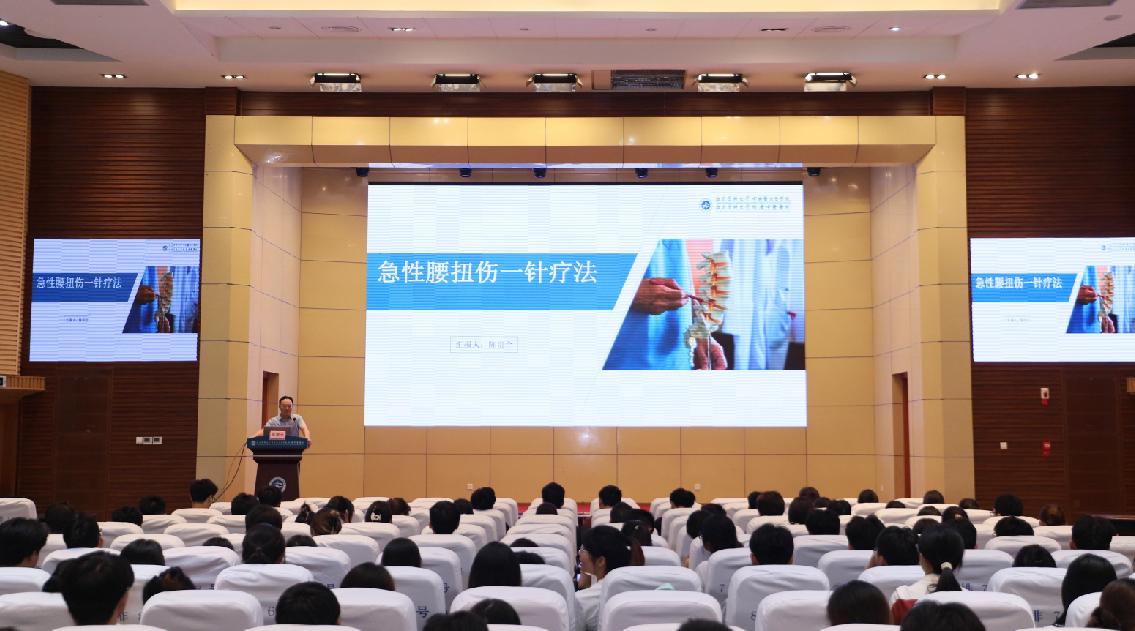 会上,针灸·推拿·康复科陈贵全主任以《腰痛一针疗法》为题作了专题讲座。他首先讲述了“一针疗法”的定义和核心特点等内容,重点围绕急性腰痛一针疗法的经络理论核心、选穴原则及疗效机制,结合临床病例进行深入浅出地讲解,让学员们对针刺疗法在骨伤患者中的治疗进展有了更深入的了解。