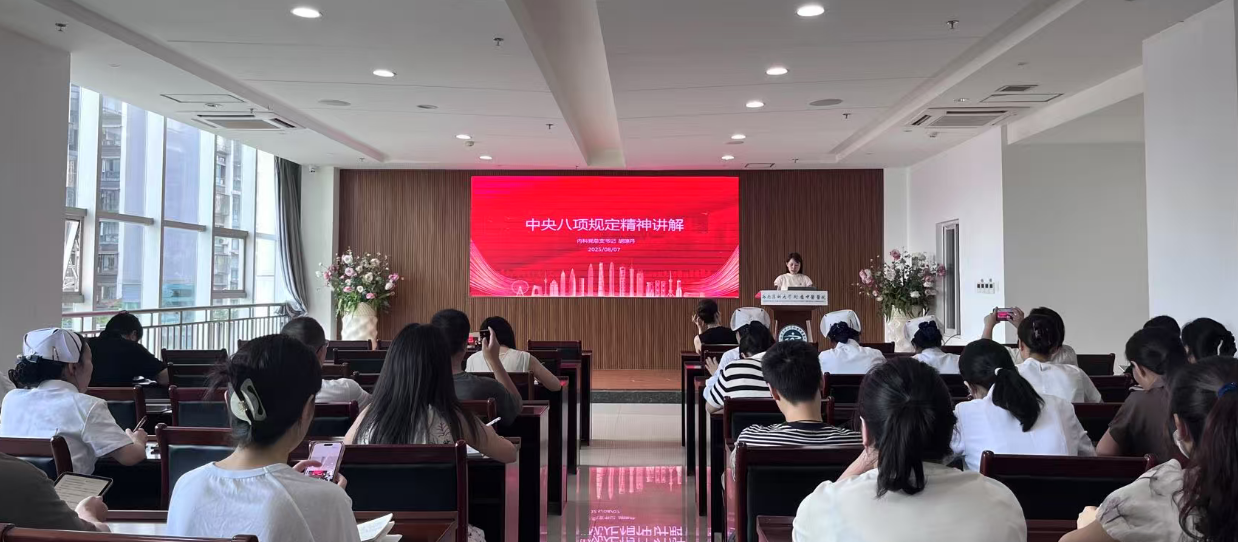 8月7日,内科党总支召开深入贯彻中央八项规定精神专题学习会。内科党总支书记、委员及内科各党支部书记、支部委员参加了会议。