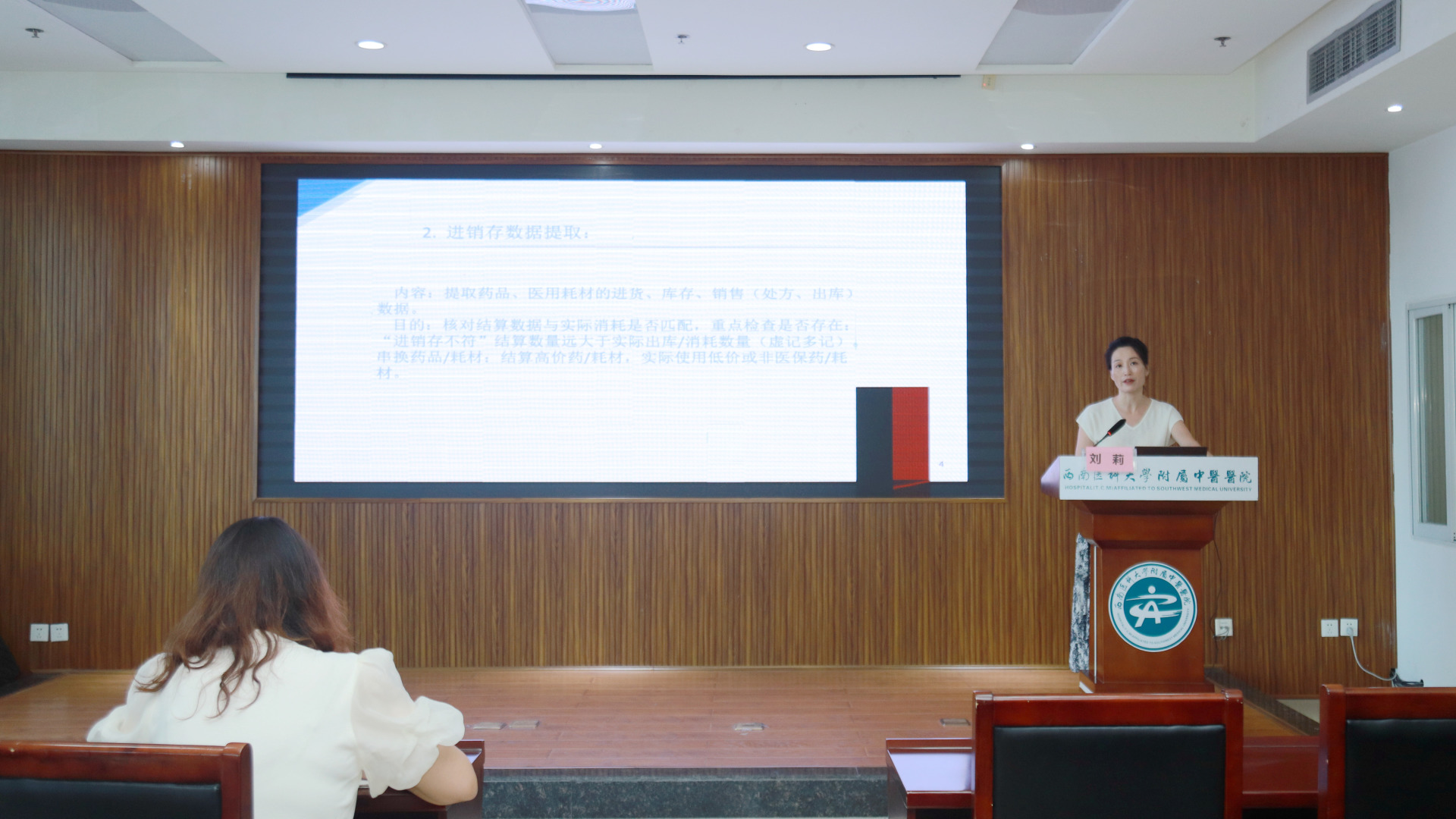 会上,医保部主任刘莉作了《党建引领惠民生,医保政策进临床》专题讲座。她就我院6月在国家医保飞行检查中的数据提取、现场核查、病历查阅等方面存在的问题进行了深入解读,同时对DIP付费医保亏损原因进行了分析,讲解了共同做好医保工作对于医院及医务人员的重要性,进一步提升了临床医务人员对医保相关工作的认识。