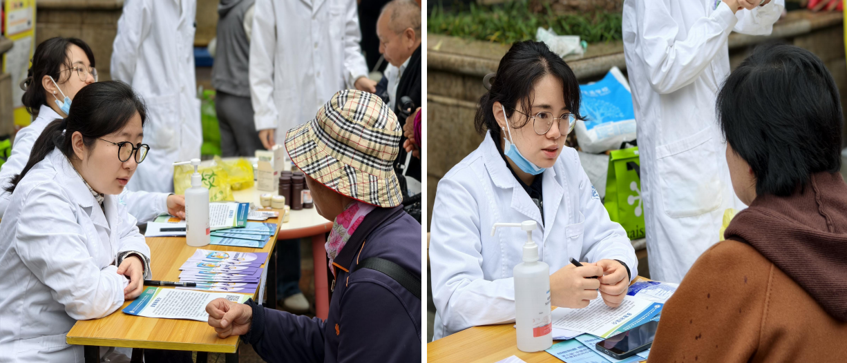 活动中,皮肤科医护人员开展了义诊活动,为社区居民提供了测量血糖血压服务,并为皮肤干燥的老年人提供了医院自制的润肤膏。