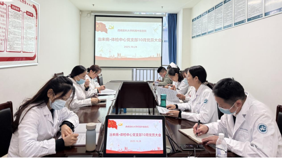 10月28日,治未病·体检中心党支部召开了党员大会,全体党员、预备党员、发展对象及入党积极分子参加了会议。会议由党支部书记周仲芳同志主持。