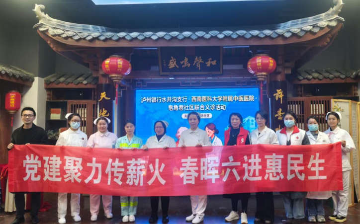 11月25日,综合内科党支部、肿瘤·血液病科(忠山)党支部、水井沟急门诊党支部、基础教工党支部、科研党支部、心脑电图党支部联合到江阳区水井沟泸州银行开展了“党建聚力传薪火,春晖六进惠民生”义诊活动。