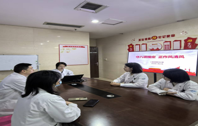 11月27日,心脑电图科党支部开展“守八项规定·正作风清风”主题党日活动。支部全体党员、部分医务人员参会。