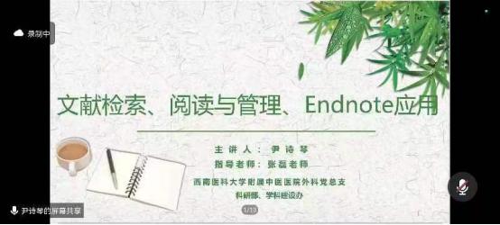 随后,西南医科大学硕士研究生尹诗琴党员同志作了《文献检索、阅读与管理、Endnote应用》专题讲座。