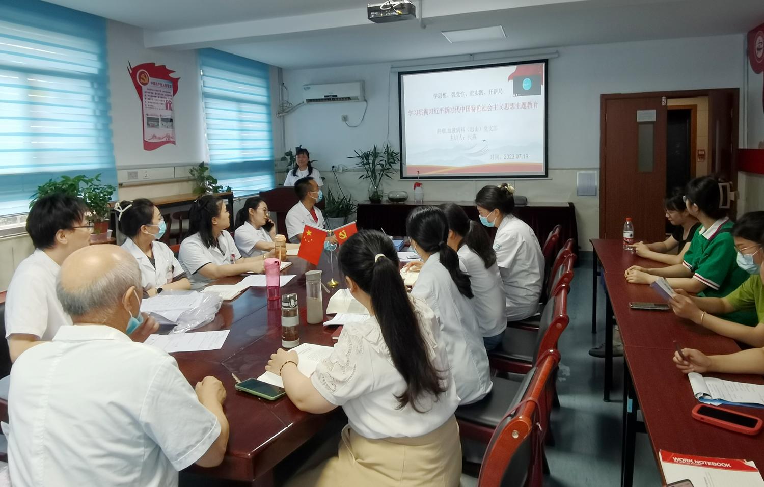 7月19日,新生儿科党支部开展了学习贯彻习近平新时代中国特色社会主义思想主题教育,支部全体党员、发展对象、积极分子等参加了会议。