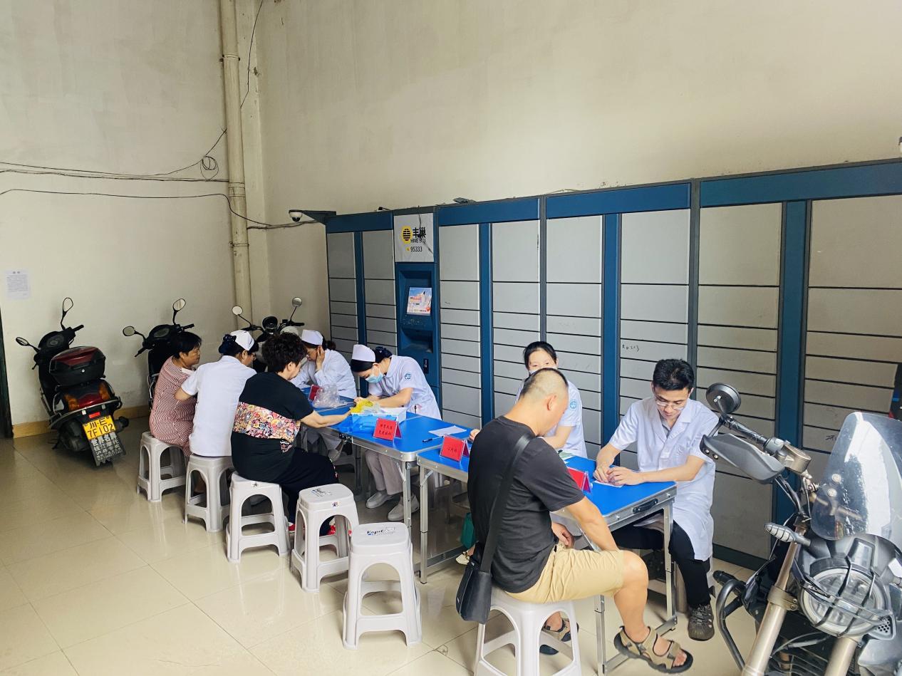 活动现场,医护人员为社区居民免费测量血压血糖,并提供了健康咨询等服务。