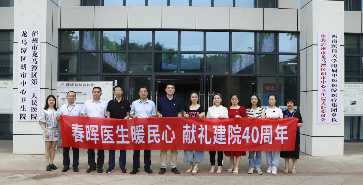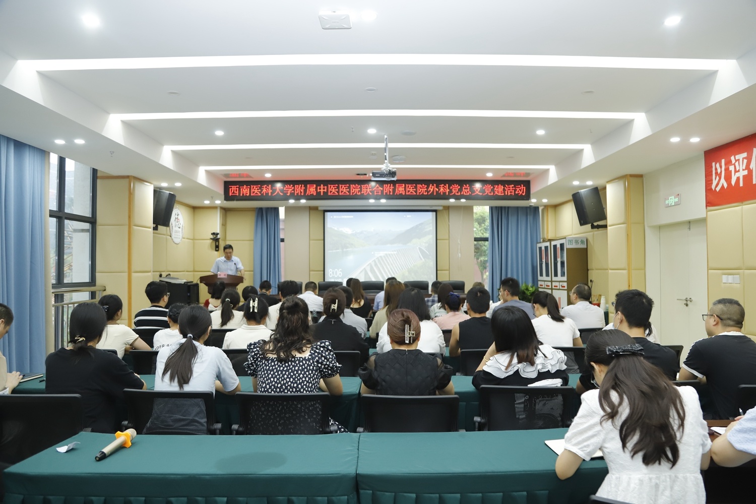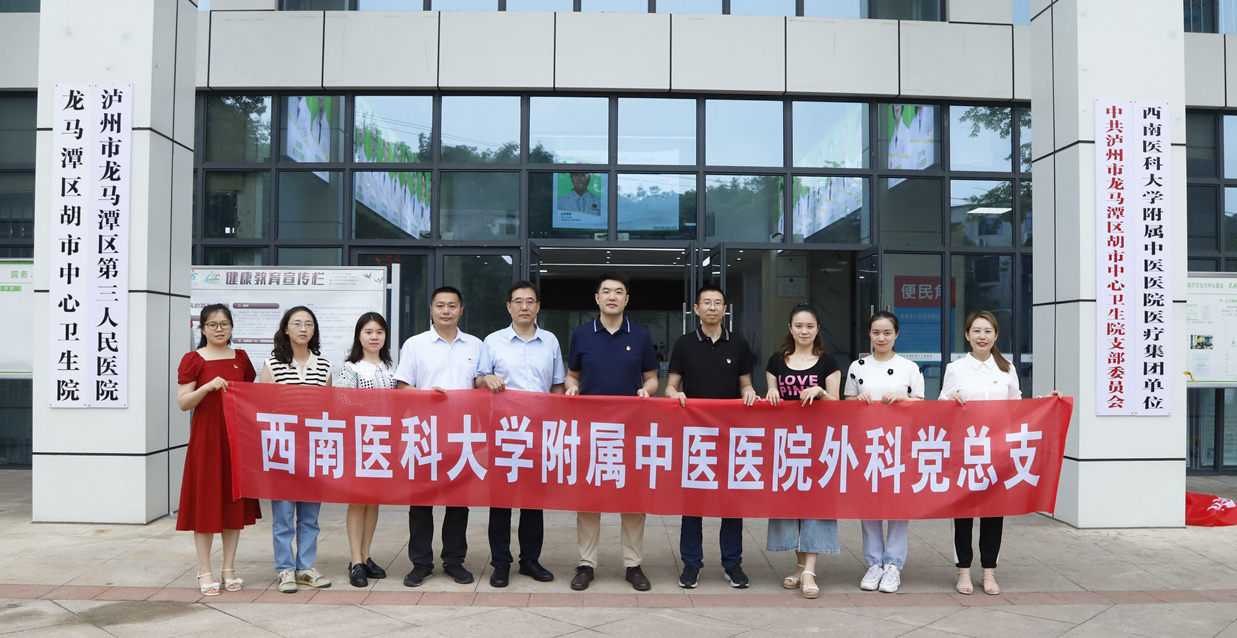 2023年7月20日,我院外科党总支联合西南医科大学附属医院外科党总支、龙马潭区第三人民医院党支部开展了中医药文化服务月系列活动之“春晖医生暖民心 献礼建院40周年”党建活动。我院外科党总支书记张磊、西南医科大学附属医院外科党总支书记周杰,相关临床科室及龙马潭区第三人民医院工作人员参加了会议。
