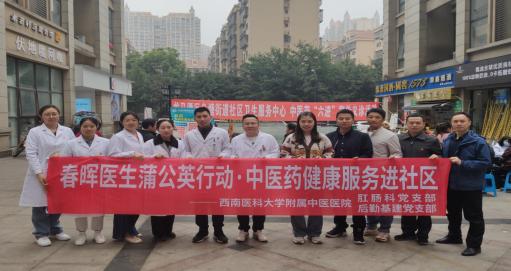 2023年3月17日,肛肠科党支部、后勤基建党支部、临床第十二团支部联合鱼塘社区卫生服务中心在春天凤凰城,以“春晖进社区,健康常相系”为主题开展了春晖医生蒲公英行动·中医药健康服务活动。