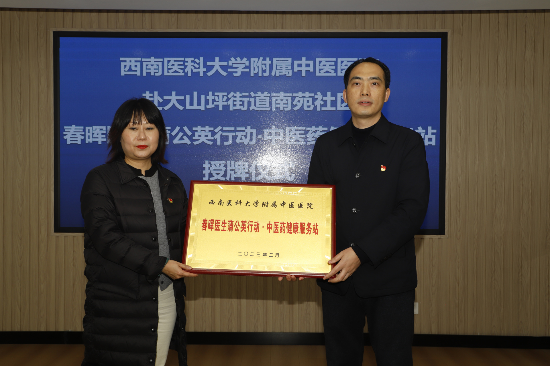 2023年2月20日,我院骨伤科脊柱·肿瘤二党支部、财务运营党支部与大山坪街道南苑社区党委举行了春晖医生蒲公英行动·中医药健康服务站授牌仪式,医院副院长汪国友,南苑社区党委书记龙霜及社区群众等参加了仪式。