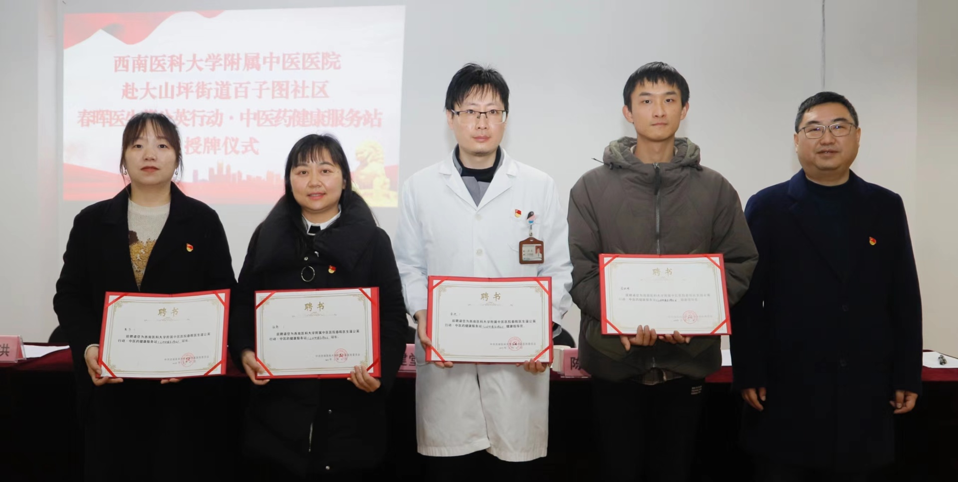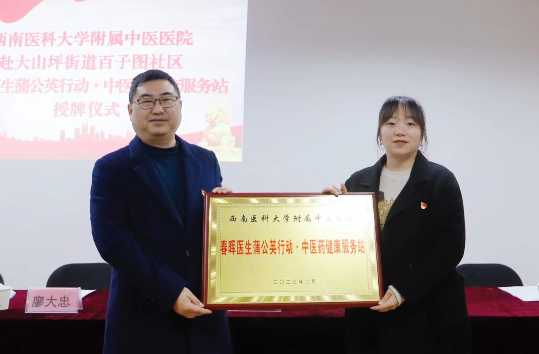 2023年3月1日,我院肿瘤·血液病科(忠山)党支部与百子图社区党委举行了春晖医生蒲公英行动·中医药健康服务站授牌仪式,医院副院长张建堂,百子图社区党委书记陈宇及社区群众等参加了仪式。