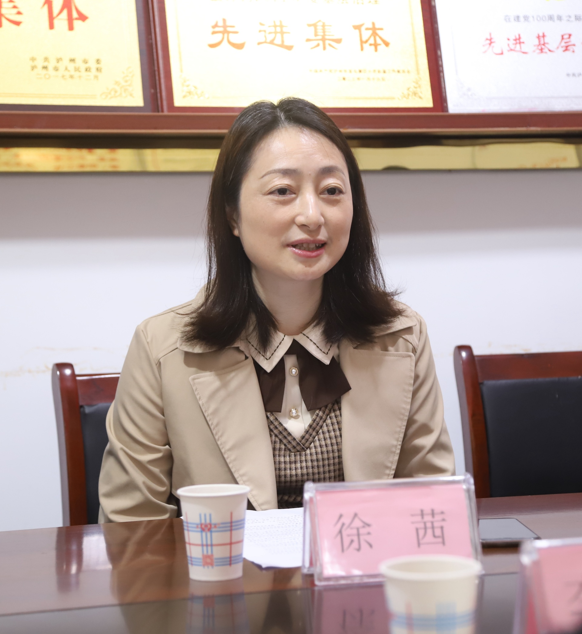 徐茜讲话,她介绍了医院基本情况和春晖医生蒲公英行动·中医药健康服务站的建设情况,希望相关党支部以此次授牌为契机,做到共建共享,促进健康,以实际行动满足老百姓的就医需求,让老百姓信中医、用中医、爱中医;坚持党建赋能,真抓实干,让服务站成为党员实践服务的平台、展现党员形象的窗口、联系群众的纽带;做到持之以恒,形成机制,服务人民群众健康,为中医药事业的发展贡献力量。