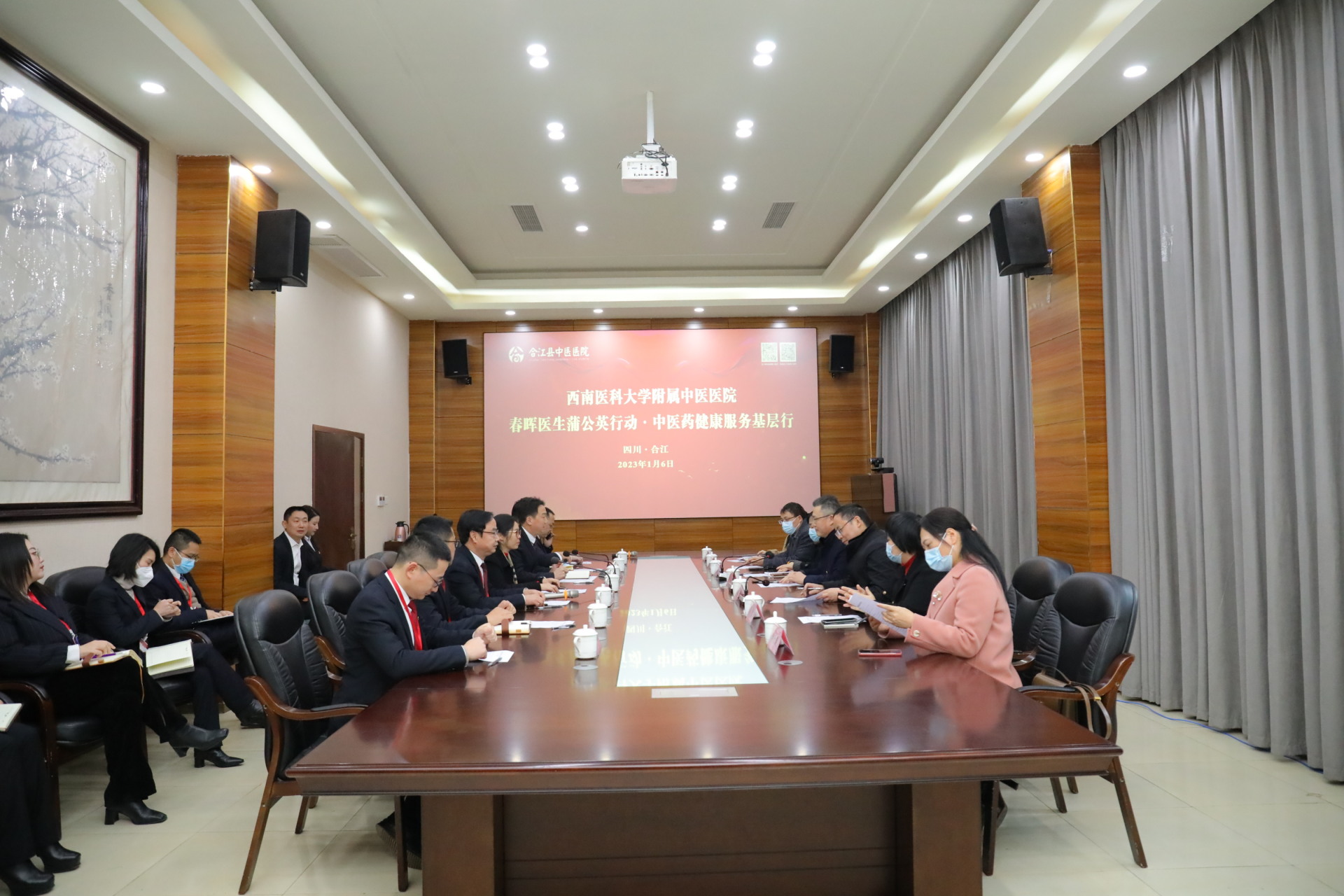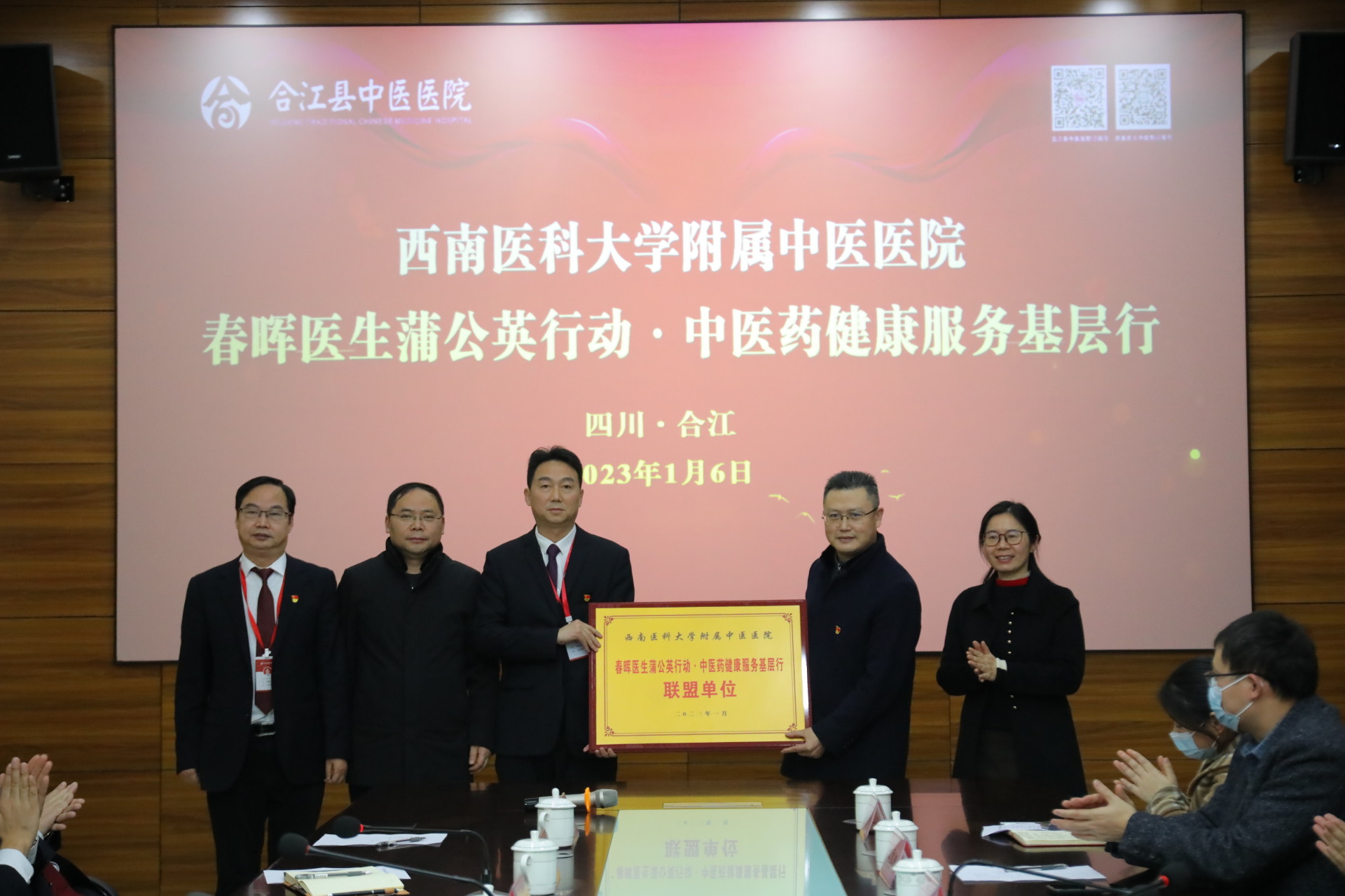 2023年1月6日,我院到合江县中医医院开展春晖医生蒲公英行动·中医药健康服务基层行联盟单位授牌仪式。医院党委书记李志、院长刘建带领相关职能部门负责人,合江县卫生健康局党委书记、局长黄亚南及合江县中医医院医院党政领导班子等参加了会议。会议由合江县中医医院党委书记李云富主持。