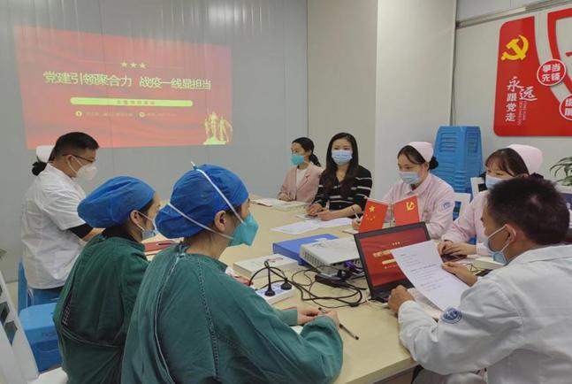 会上,医院党委副书记、纪委书记徐茜通过连线的方式向与会党员介绍了前线抗疫情况,并邀请抗疫前线的医务人员分享了抗疫心得体会。