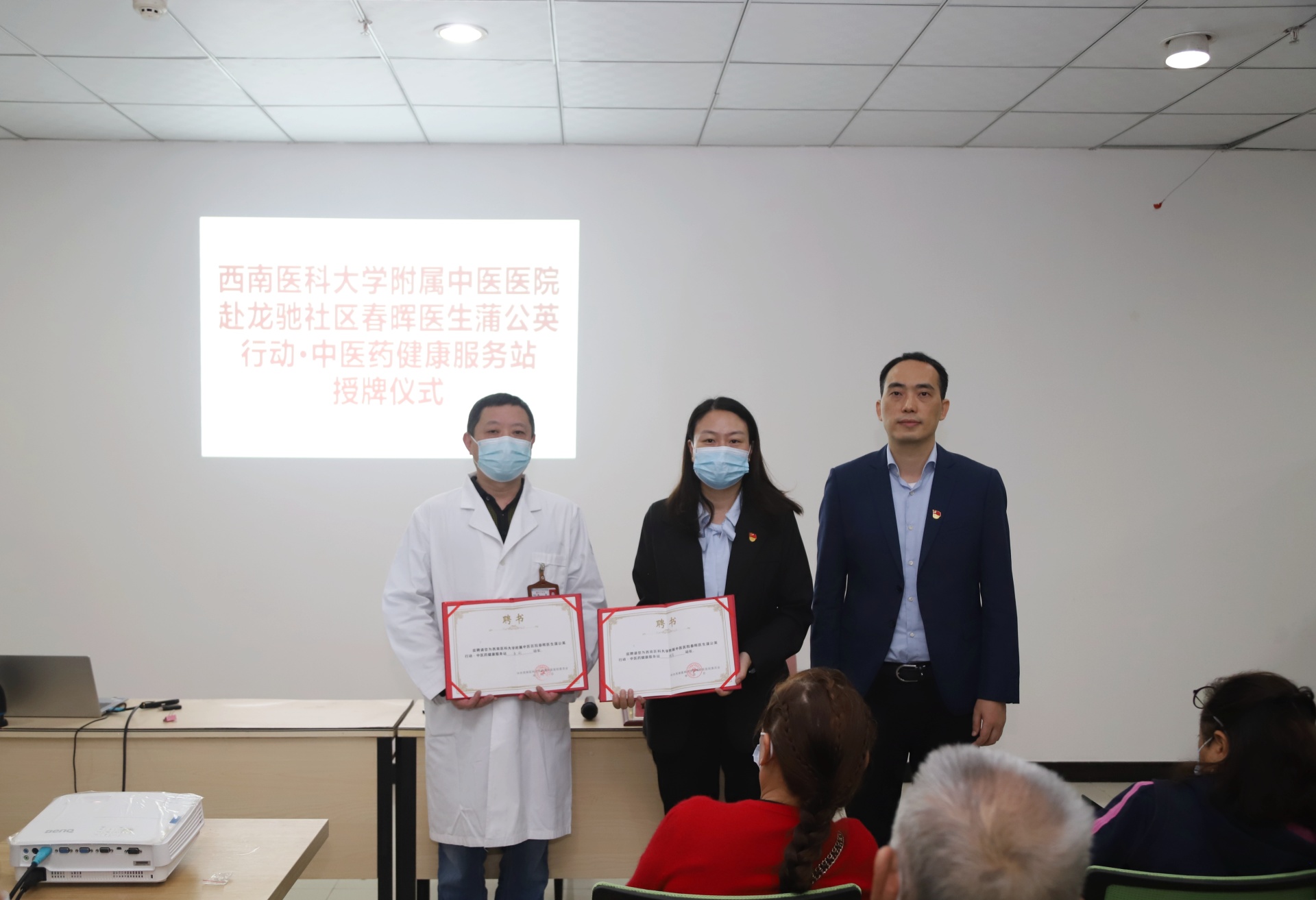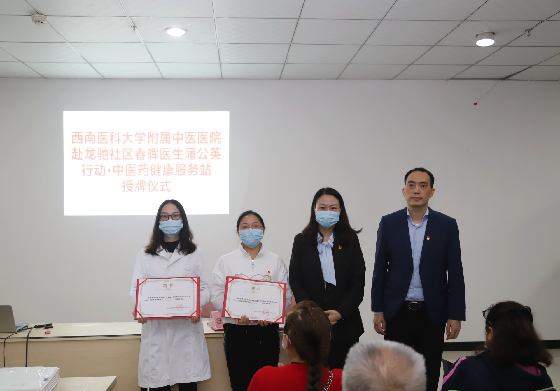 随后,汪国友代表医院向龙驰路社区授予“春晖医生蒲公英行动·中医药健康服务站”牌匾,并向相关人员颁发了服务站站长、健康指导员和健康辅导员聘书。