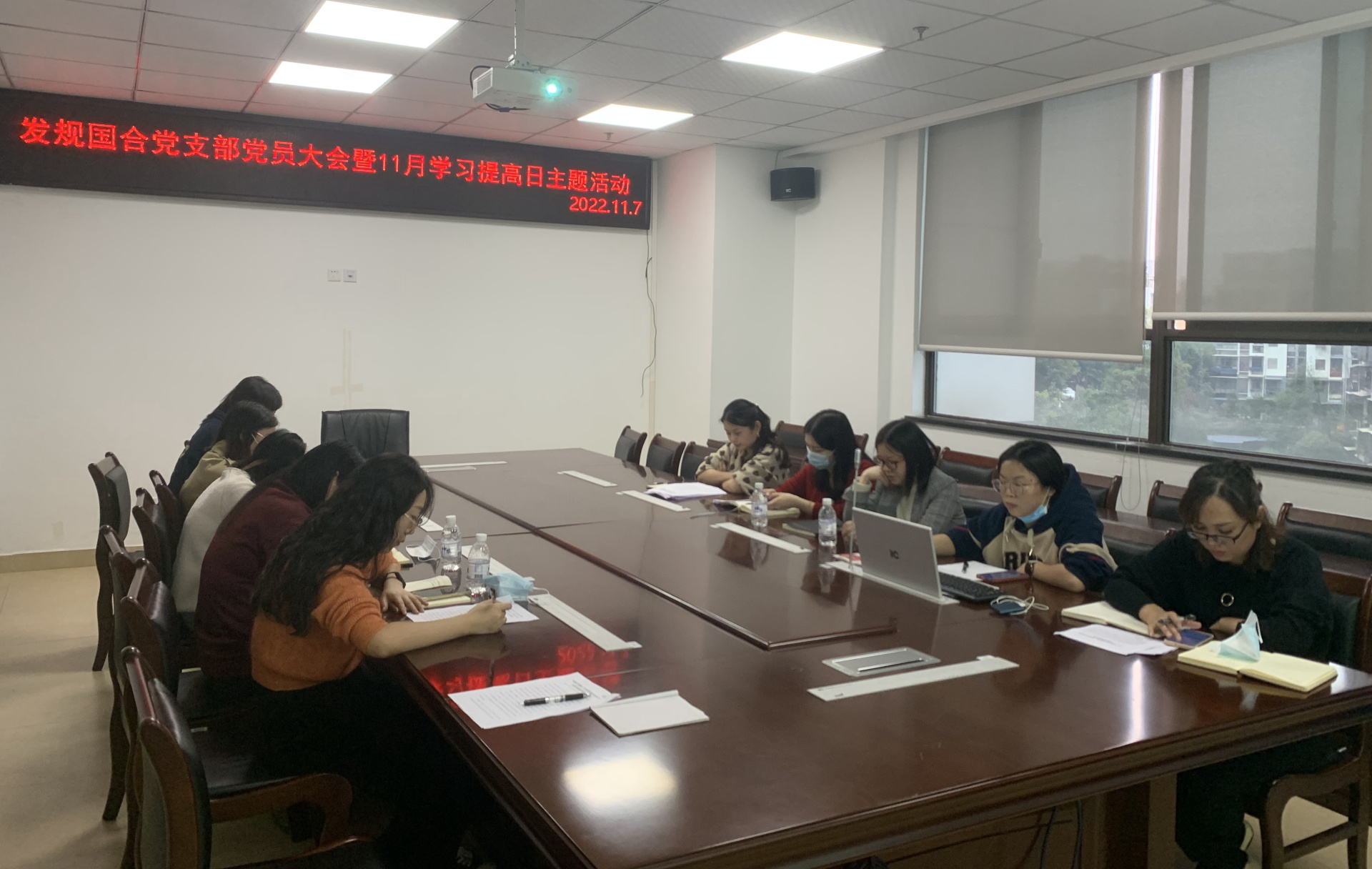 2022年11月7日,发规国合党支部召开了党员大会,支部全体党员参加了会议。