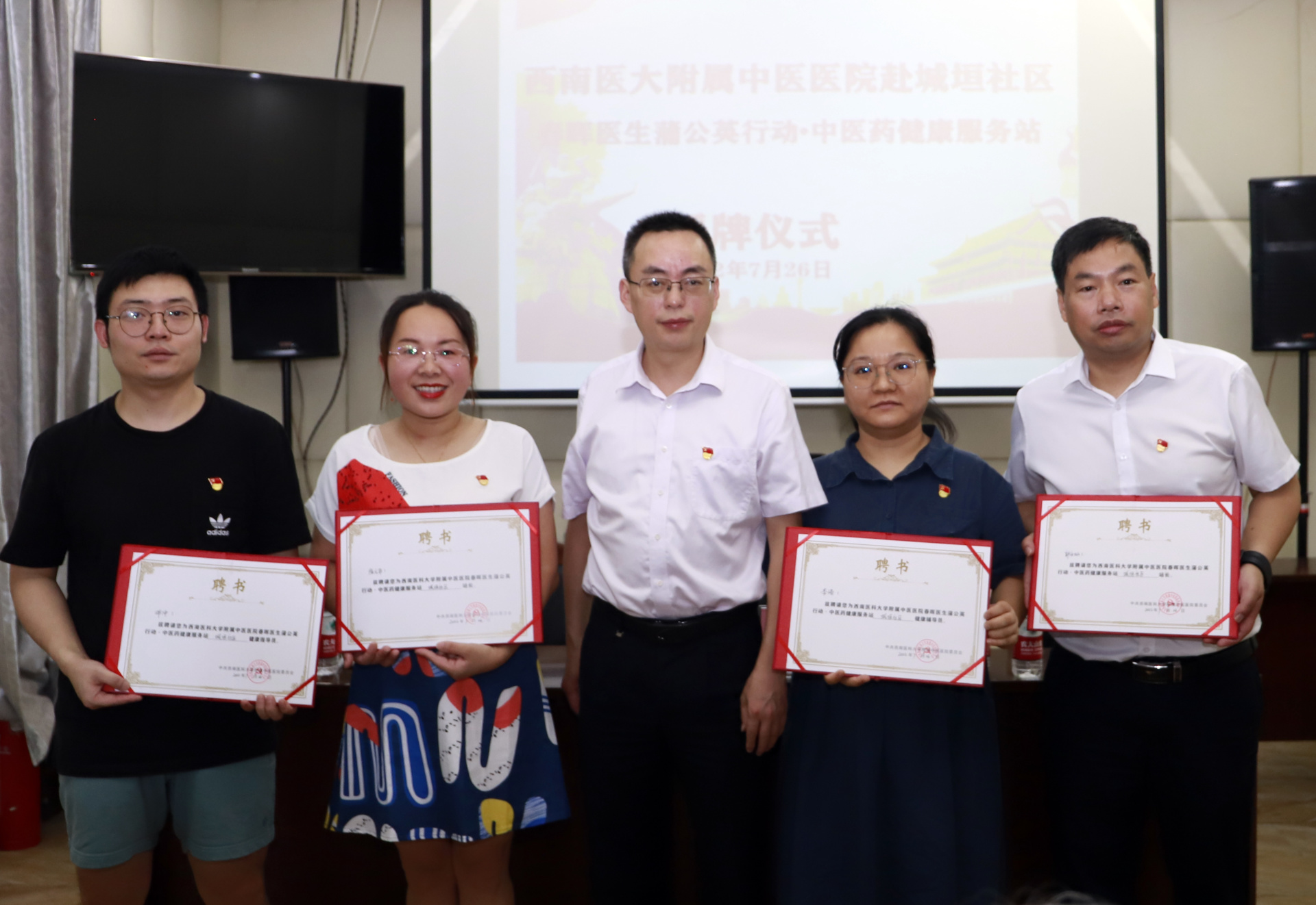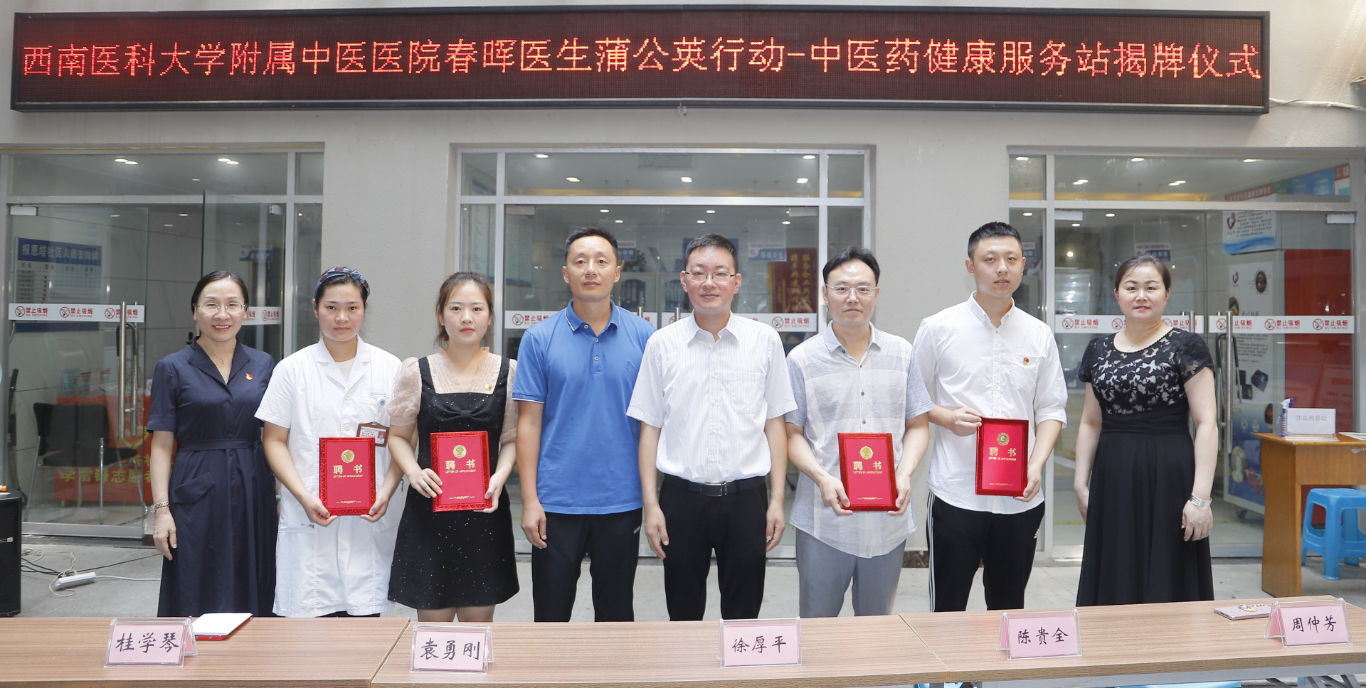 7月26日,我院针灸·推拿·康复科党支部、治未病体检中心党支部与泸州江阳区报恩塔社区党委举行了春晖医生蒲公英行动·中医药健康服务站授牌仪式,医院副院长徐厚平,报恩塔社区党委书记梁浩及相关支部人员、社区群众参加了仪式。
