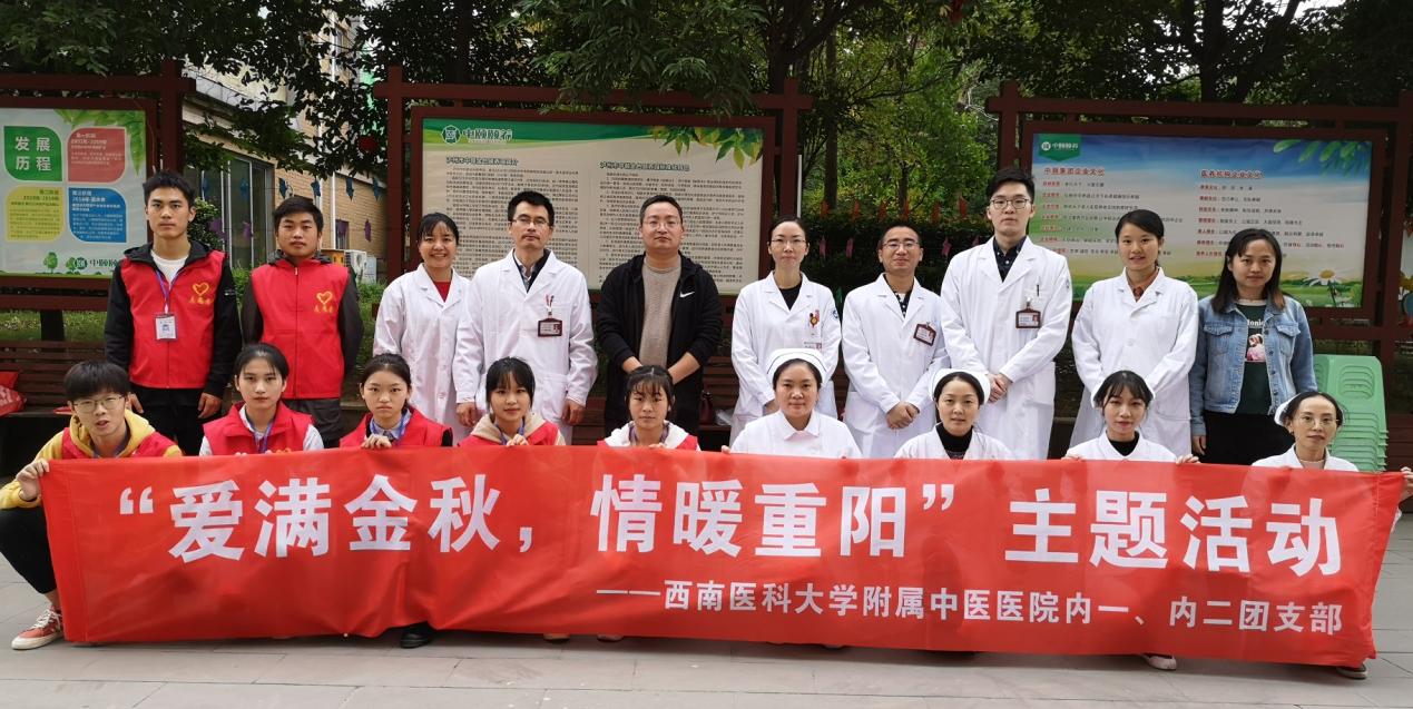 2020年10月25日,我院内一、内二团支部及中西医结合学院分团委、学生科联合在泸州市中颐·金色颐养园开展了“爱满金秋,温暖重阳”主题尊老、爱老、敬老义诊活动。