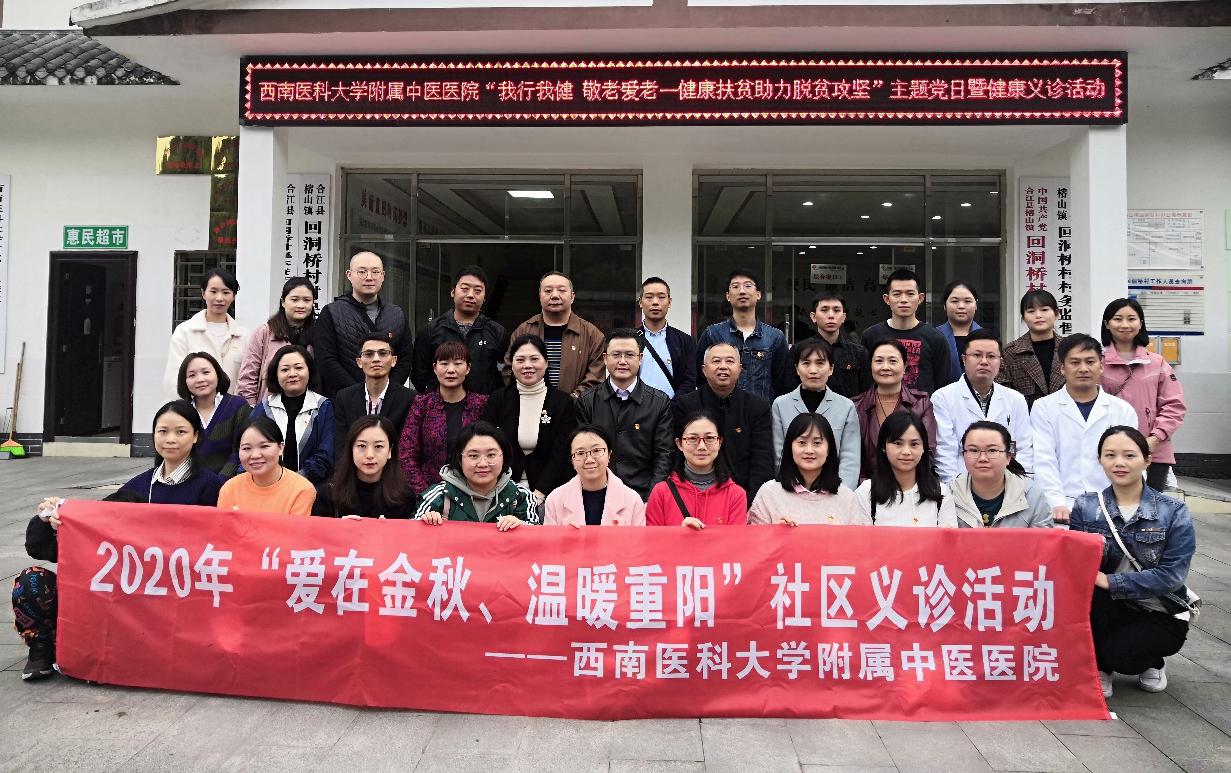 2020年10月25日,我院机关第四党支部在合江县回洞桥村开展了“我行我健、敬老爱老——健康扶贫助力脱贫攻坚”主题党日暨义诊活动,医院党委书记李志,部分临床科室专家及机关第四党支部全体党员等参加了活动。活动由支部书记李素莲主持。