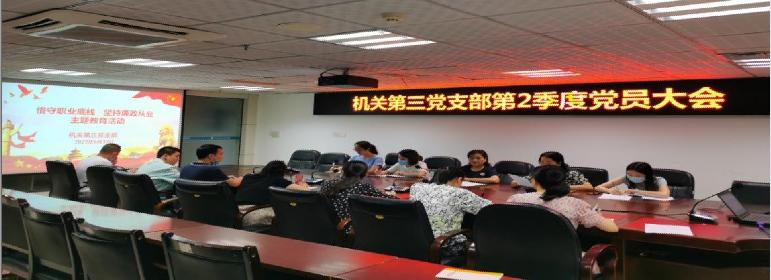 6月30日,我院机关第三党支部召开第二季度党员大会暨“恪守职业底线,廉洁从业”党风廉政教育活动,支部党员参加了会议。会议由组织委员甘陈芳主持。