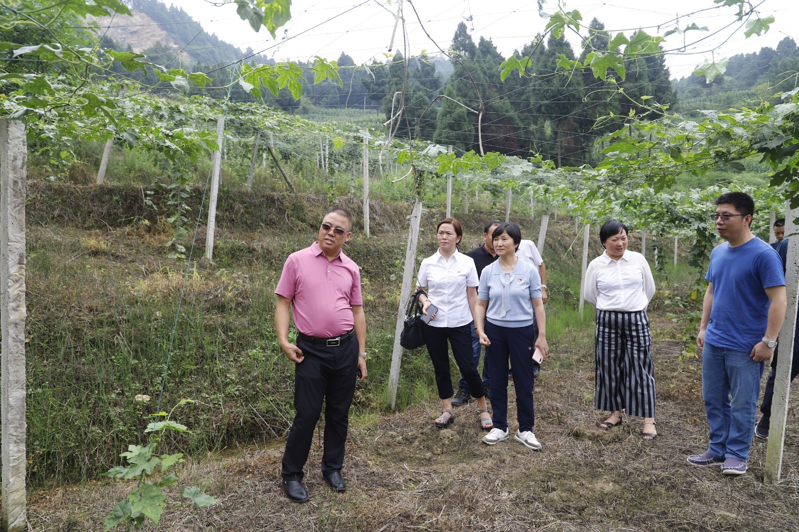在双沙镇党委书记严涛、党委副书记·镇长李畅、普庆村“两委”干部和我院驻村干部葛丁等的陪同下,王琳书记一行到中药材(瓜蒌)种植基地查看了瓜蒌生长情况。