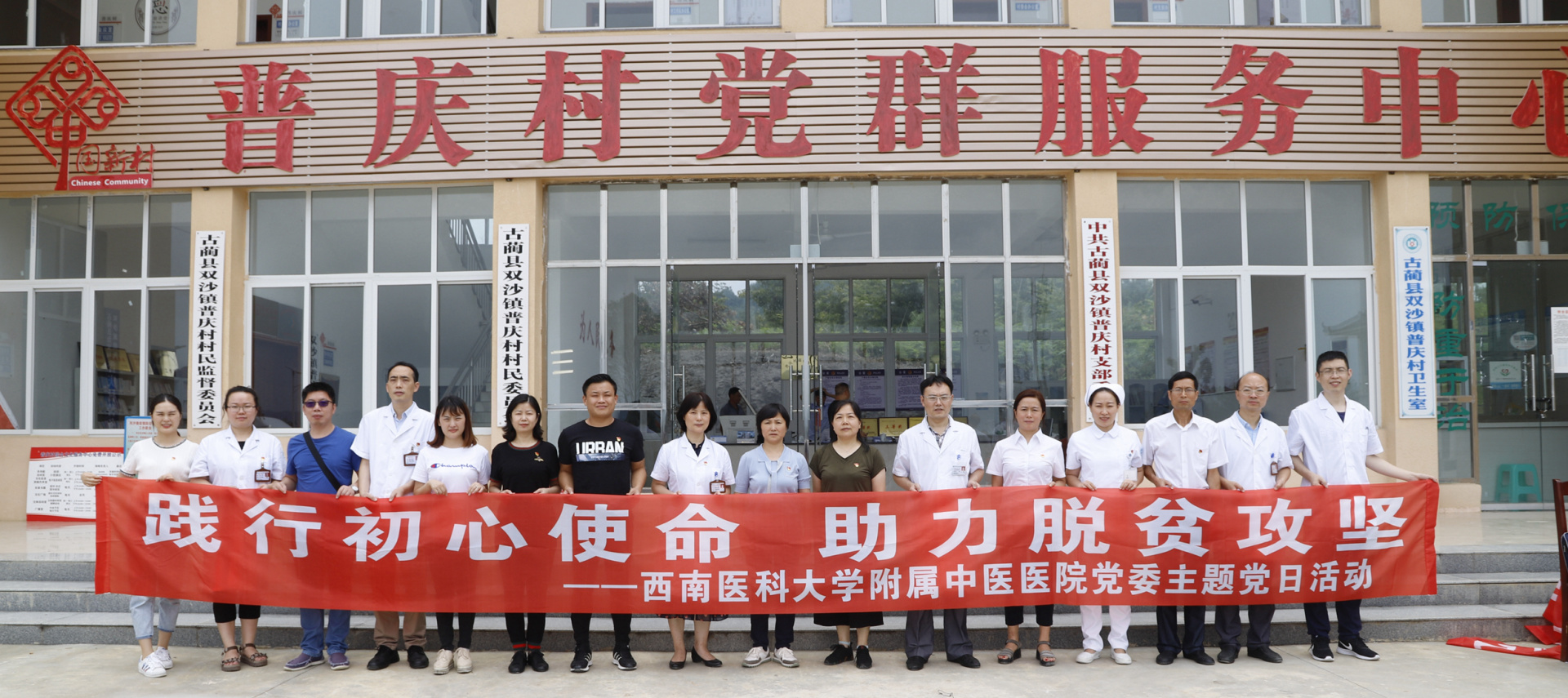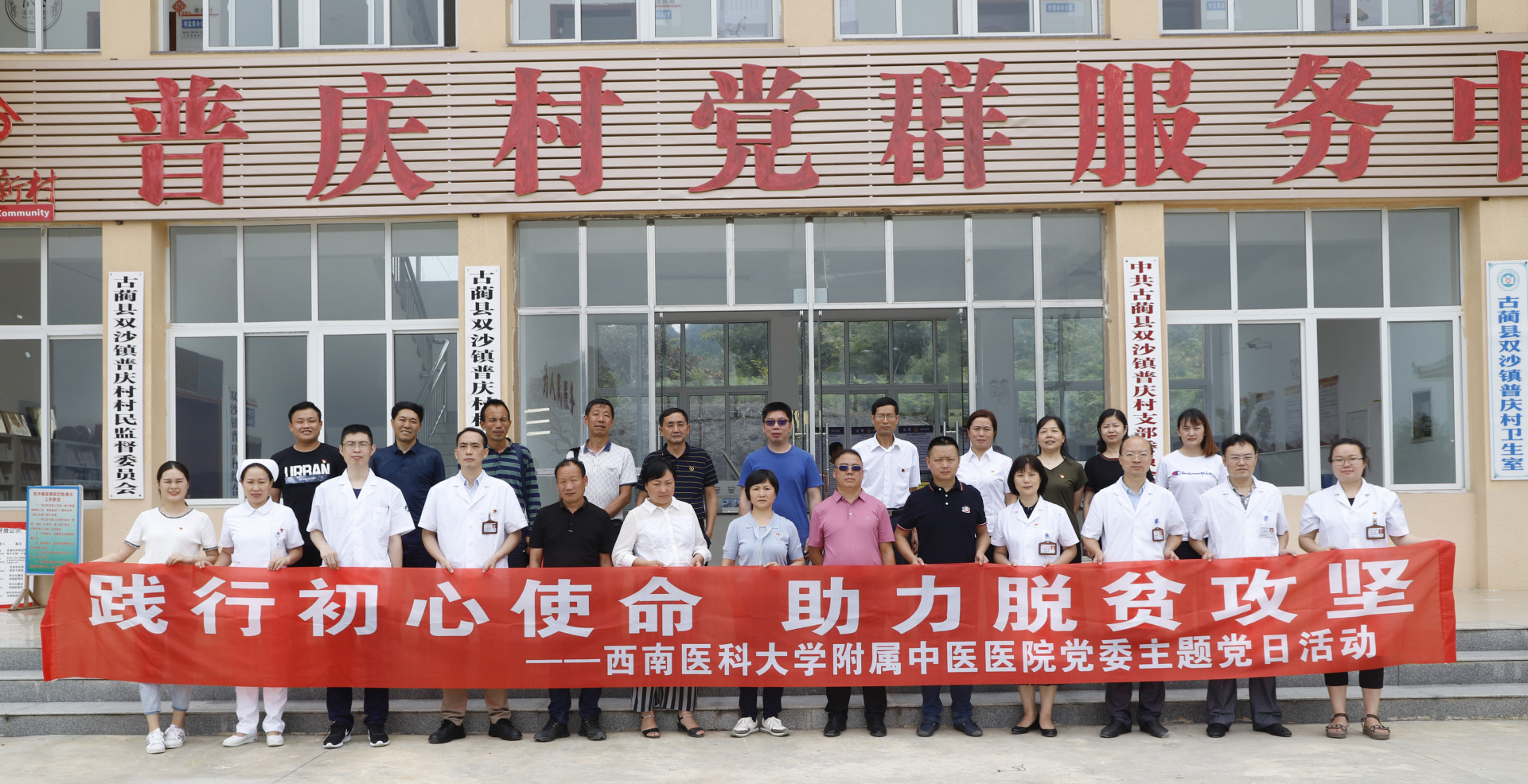 2020年7月9日,医院党委书记王琳带领党委办公室(扶贫办)、宣传部、保卫工作部、感染管理办公室等相关人员和部分党支部书记、医护人员深入古蔺县双沙镇普庆村开展了“践行初心使命 助力脱贫攻坚”主题党日活动。
