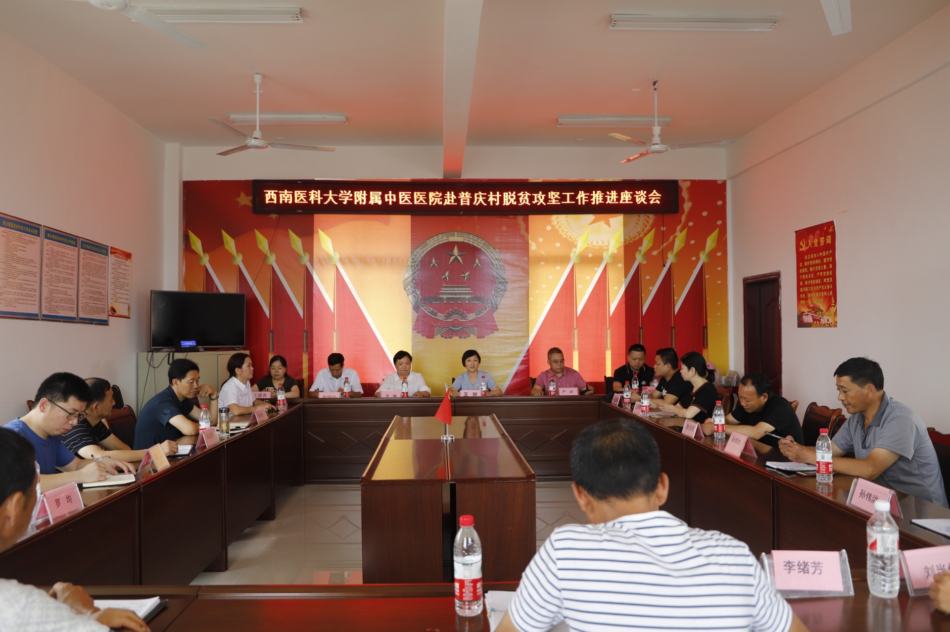 会上,普庆村驻村第一书记陈明贵汇报了普庆村脱贫攻坚工作开展情况及取得的成效,严涛代表双沙镇党委政府对我院近年来真帮实扶普庆村所作的贡献表示感谢,特别是要求村两委要教育村民心怀感恩,开拓思路,抓实中药材种植项目和粉条加工等帮扶项目,不断巩固成效。