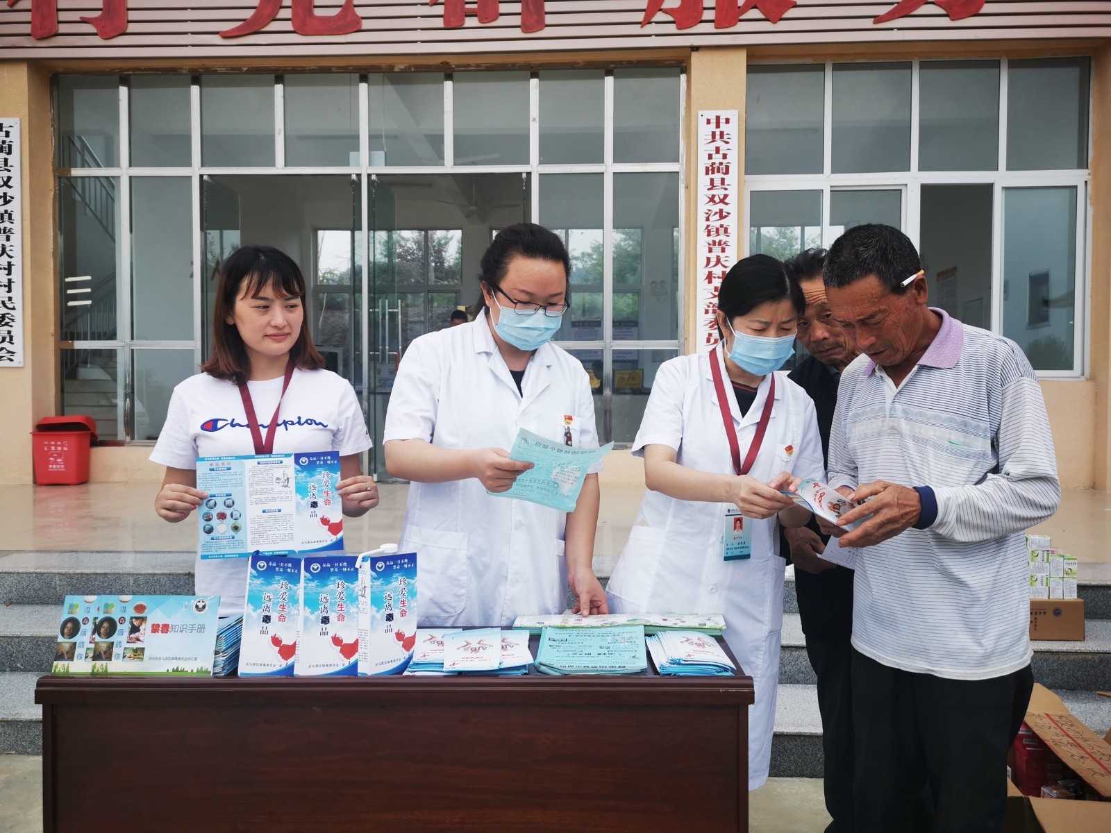活动现场,我院感染管理办公室及保卫工作部人员还为当地村民进行了禁毒防艾宣传。