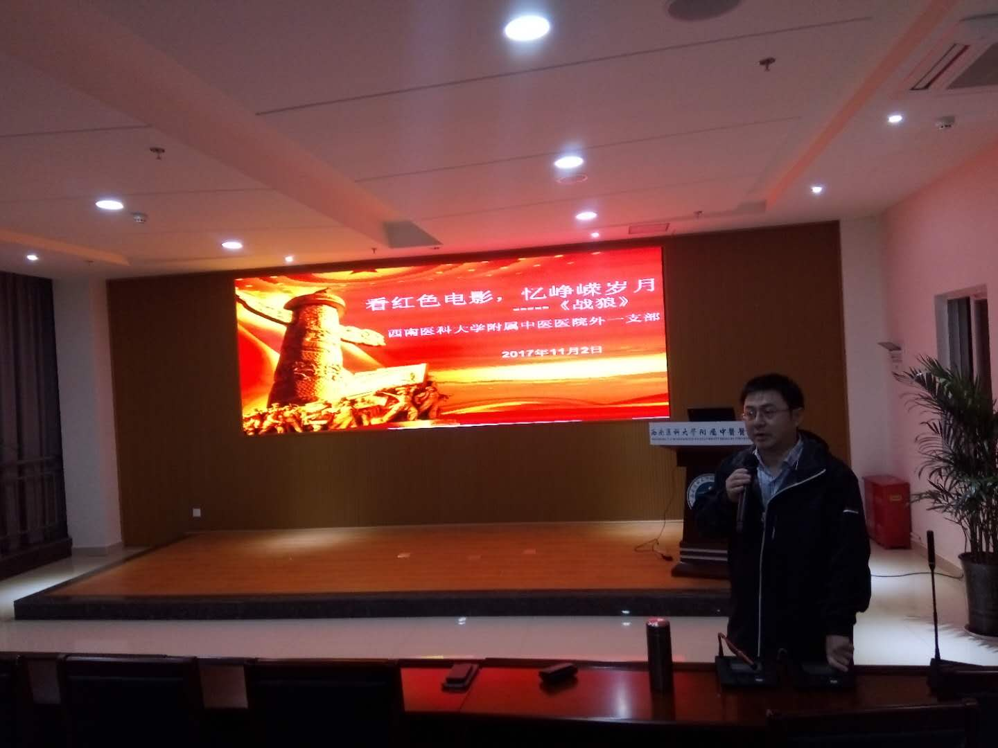 2017年11月2日晚上7时,西南医科大学附属中医医院外一支部在医院党办、工会、网络中心的协助下,外一支部在第二住院大楼二楼的第二会议室开展党建活动--“看红色电影,忆峥嵘岁月”。