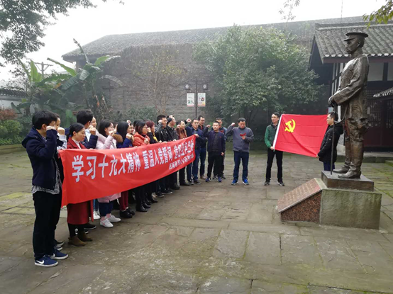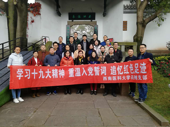 2017年11月26日上午,我院药剂党支部来到泸州况场朱德旧居陈列馆进行了主题为“学习十九大精神,重温入党誓词,追忆红色足迹”的参观活动,参观结束后,全体党员向朱德纪念像鞠躬致敬并重温入党誓词,最后合影留念。