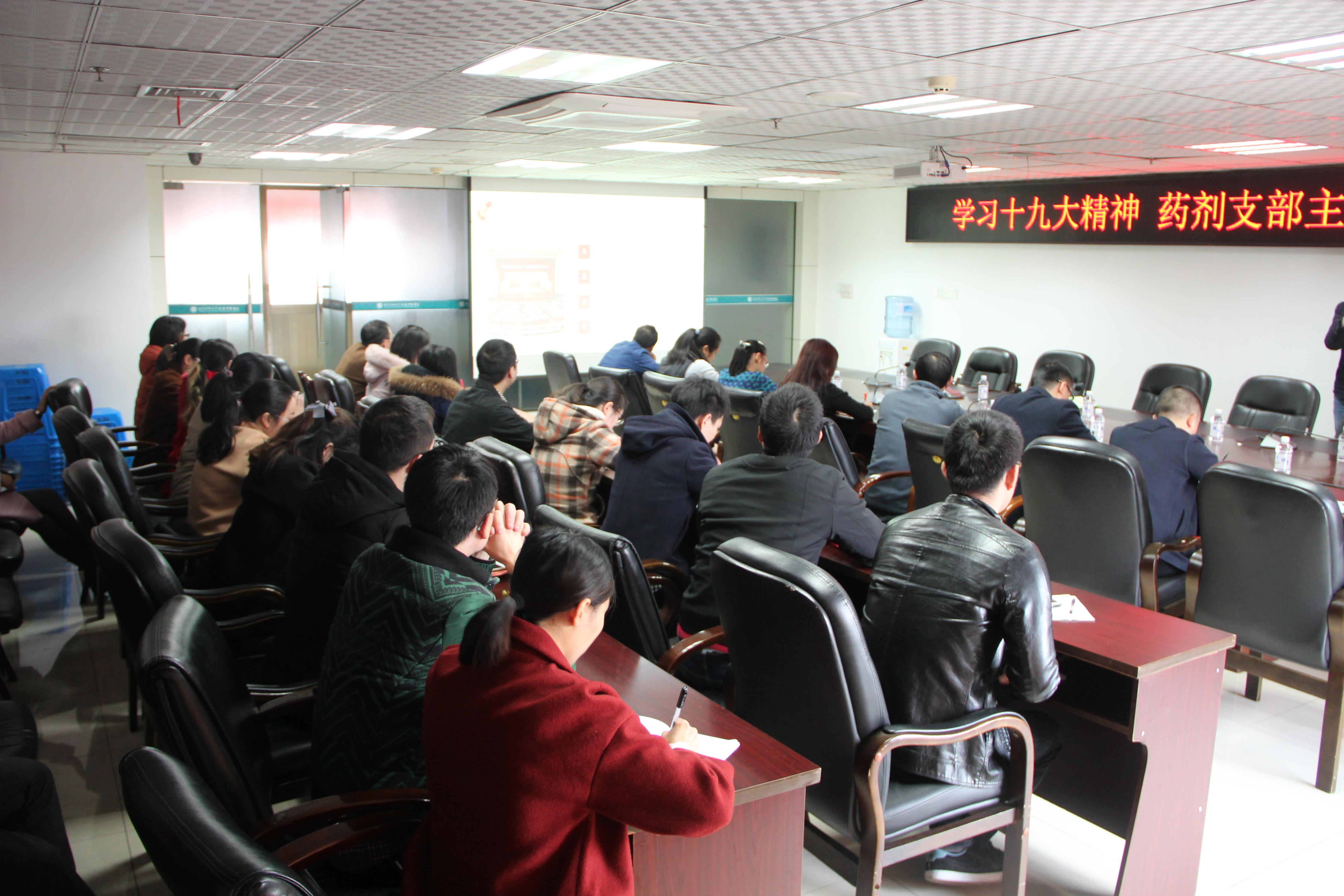 随后,支部在医院岐黄厅召开支部大会,医院党委书记王琳同志在会上宣讲十九大会议精神和学习纲要,强调“不忘初心、牢记使命”的主题。