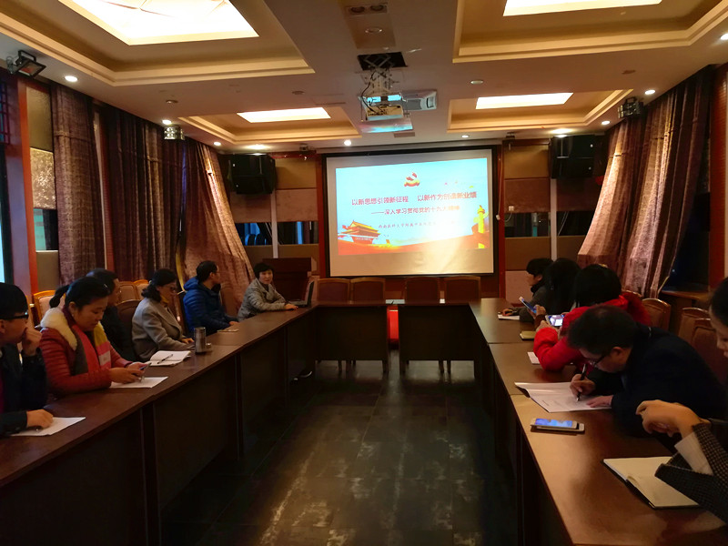 2017年12月3日上午,西南医科大学中西医结合学院·附属中医医院基础教工党支部全体党员举行了学习十九大精神主题党日活动。本次活动邀请了中西医结合学院•附属中医医院党委书记王琳为支部党员讲党课。 王琳书记以“以新思想引领新征程,以新作为创造新业绩”为主题,分六个板块,详细解读了《中国共产党第十九次全国代表大会报告》,并结合我院党员工作和生活情况,为大家带来了一场生动形象的党课。