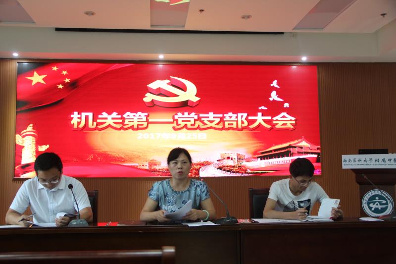 2017年9月25日下午,西南医科大学附属中医医院机关第一党支部于第二住院楼1号会议室召开支部党员大会,会议由支部书记李素莲同志主持。
