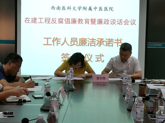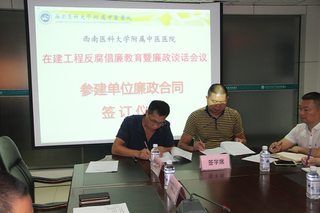 会上,纪委副书记·纪委办主任高冰宣读了医院《工程建设项目监督方案》;医院工程项目建设人员代表签订了《工程(维修)项目建设工作人员廉洁承诺书》;各参建单位、监理单位、零星备选库单位代表分别与医院签订了《建设工程廉政合同》。