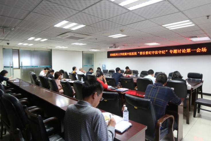 在集中学习阶段,王琳书记传达了上级关于意识形态工作的相关安排和要求,纪委副书记高冰传达了省卫生计生委法制培训会精神以及开展微腐败整治工作和党风廉政建设社会评价工作的相关要求,观看了纪录片《辉煌中国》之圆梦工程。在集中学习后,与会人员分成三组,分别围绕“普法普纪、守法守纪”教育的四个专题(“通过普法普纪、守法守纪”教育有什么体会、腐败得来的金钱能带来幸福和快乐吗、怎样做到既一心干事又一身干净以及如何做一名知法守法、遵纪守的“中医人”)进行了热烈的讨论。