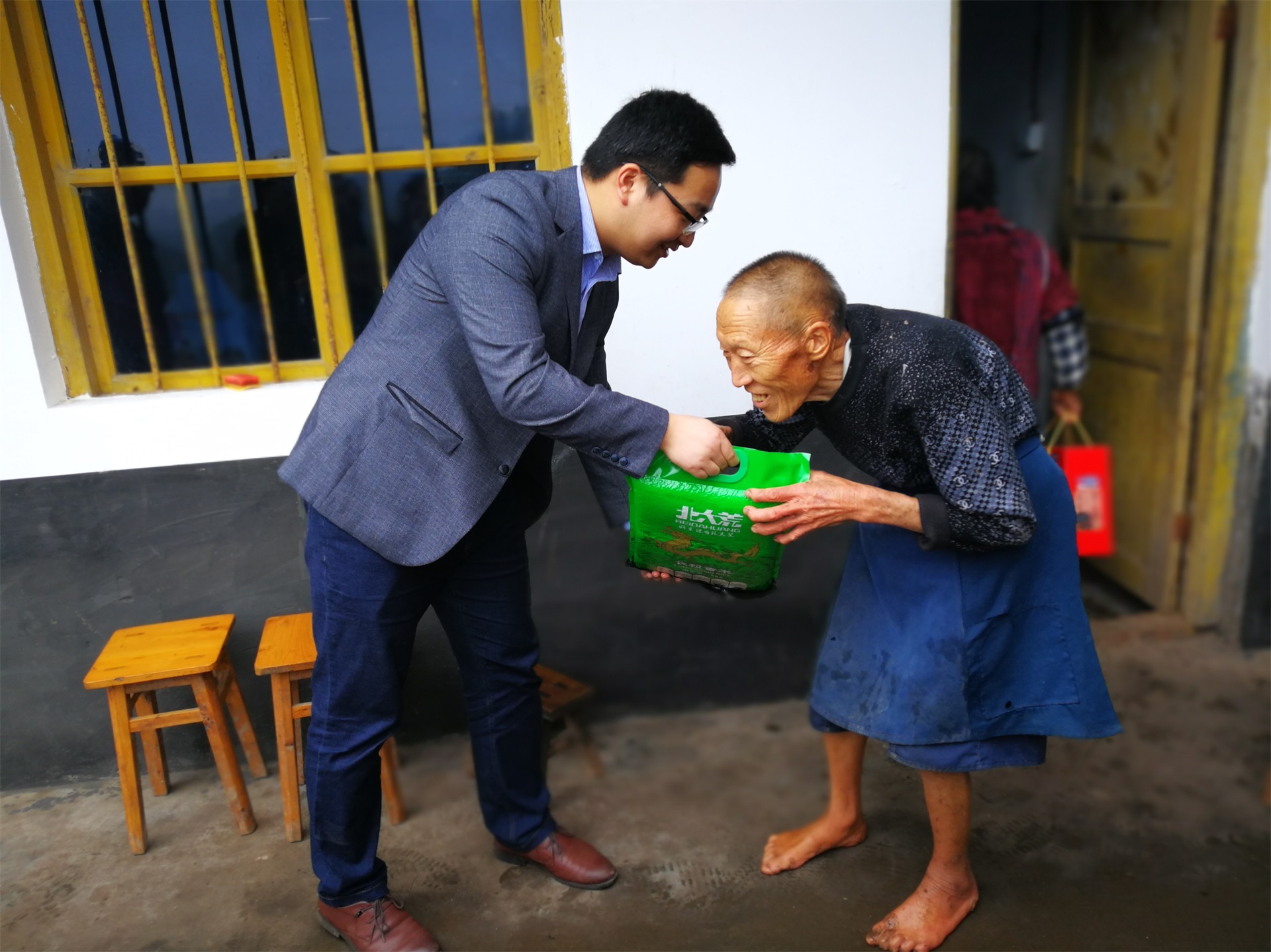 2017年10月26日,我院机关第一党支部书记李素莲带领支部党员到合江县榕山镇回洞桥村进行了对口帮扶活动。机关第一党支部党员为对口帮扶贫困户张福明一家送去了电饭煲、米、油等生活用品。当李素莲书记得知对口帮扶贫困户的两位老 人眼睛和背部有疾病后,还带了一名眼科医生和一名骨科医生一同前去为老人义诊并为其送去药品。 机关第一党支部党员通过与张福明一家进行座谈,详细了解了他家的经济情况、家庭情况、就医条件等,并对其农副产品的销售提出了宝贵的意见,为张福明一家早日实现脱贫增添助力。