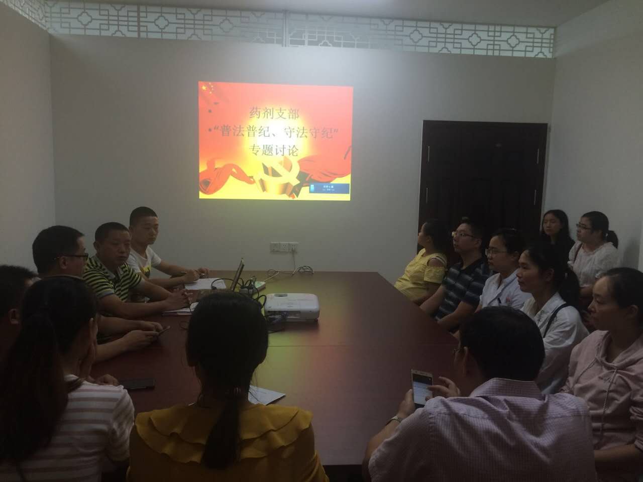 2017年9月20日下午,药剂支部召开“普法普纪、守法守纪”专题讨论会。支部党员围绕:通过“普法普纪、守法守纪”教育,有什么体会?腐败得来的金钱,能带来幸福和快乐吗?怎样做到既一心干事,又一身干净?如何做一名知法守法、遵纪守规的“中医人”,开展积极讨论,每位党员分别讲述了自己的感受和体会。通过专题讨论进一步强化了支部党员的法纪意识,营造了学纪知纪的浓厚氛围。