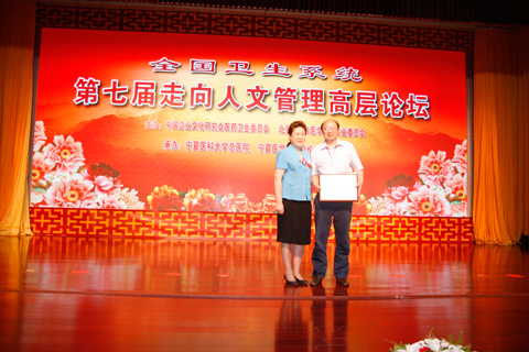 7月21--23日,全国卫生系统“第七届走向人文管理高层论坛”在宁夏银川召开。我院在会上获得了“医院文化建设创新奖”荣誉称号。党委书记李正新上台领奖。