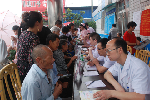 6 月11日,泸医中医院医务人员赴龙马潭区安宁镇开展了“服务新农村周末送健康”义诊活动。本次义诊共吸引了100余人冒雨前来咨询,免费发放300余份资料及2000余元的药品。此外,治未病中心主任还为当地医务人员及群众作了健康养生讲座。