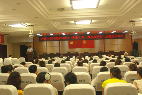 2011年7月7日,泸医中医院团委在城北新院举行了“红色七月,永远跟党走”主题团日活动。本次活动中,团委组织新入党党员对党旗宣誓,由医院党委副书记、纪委书记代天祥同志带领团员、青年回顾党的90年光辉历程,并组织团员、青年集中观看了电影《建党伟业》。通过活动的开展,让广大团员、青年对党的历史、党情有了更详细的了解,对党所担负的实现中华民族伟大复兴的历史使命有了更深刻的理解,并结合医院工作实际,对团员、青年提出了新的奋斗目标,达到了活动的教育目的,受到广泛好评。