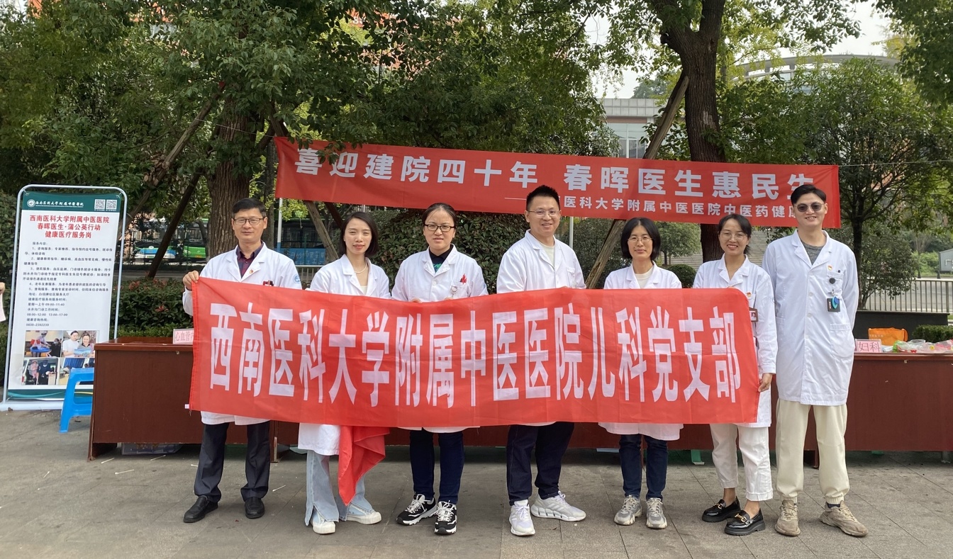 2023年11月10日,儿科党支部赴泸州市江阳区白招牌社区开展主题为“我为儿童保健康”义诊活动,为社区小朋友提供用药咨询及常见疾病的诊查。