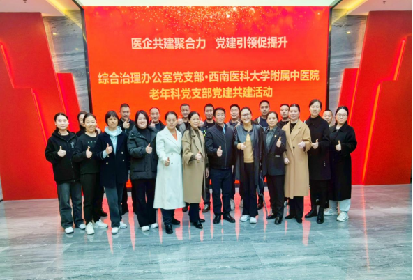 12月14日,老年病科党支部联合泸州老窖股份股份有限公司综合治理办公室党支部联合开展了“医企共建聚合力,党建引领促提升”主题党日活动,老年病科党支部党员、泸州老窖股份股份有限公司综合治理办公室党支部党员代表共25人参加了活动。