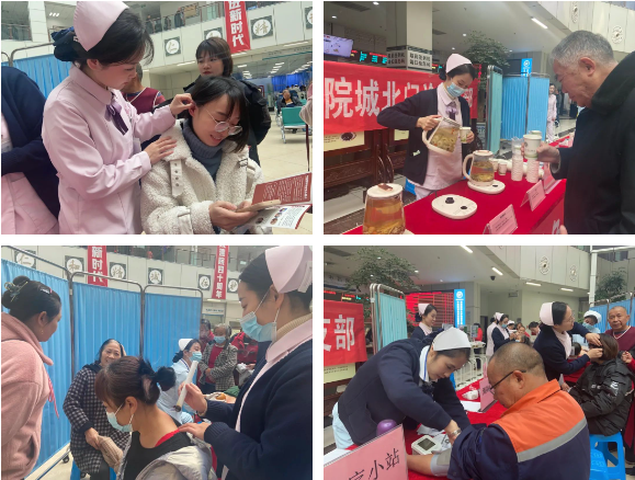 12月12日,城北门诊党支部联合老年病科开展了“中医特色服务主题日”活动。医务人员免费为群众测量血压、把脉问诊,并提供了推拿按摩、拔罐、刮痧等中医药特色技术服务体验,现场发放了中医药科普资料等。